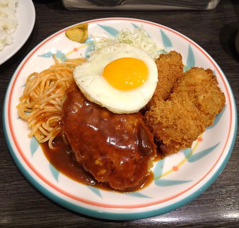 キッチンセブン(浅草橋) サービスランチ(特盛)950円 (36B 目玉ハンバーグ&ヒレカツ定食) 手頃な価格で洋食を食べられる 浅草橋の街のハ···